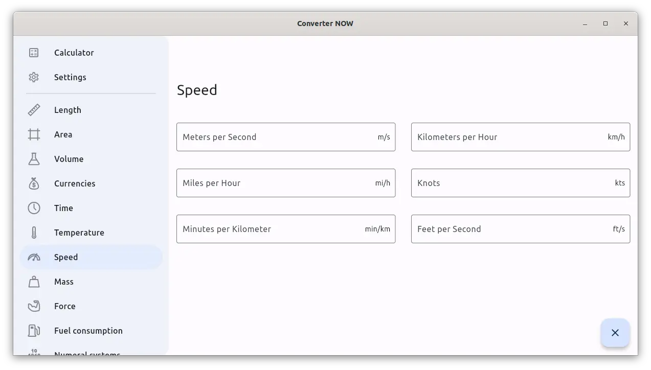 The app is super fast, juststart typing and immediately you have the real-time conversion with all the other units. It also has a built-in calculator that works in every page.