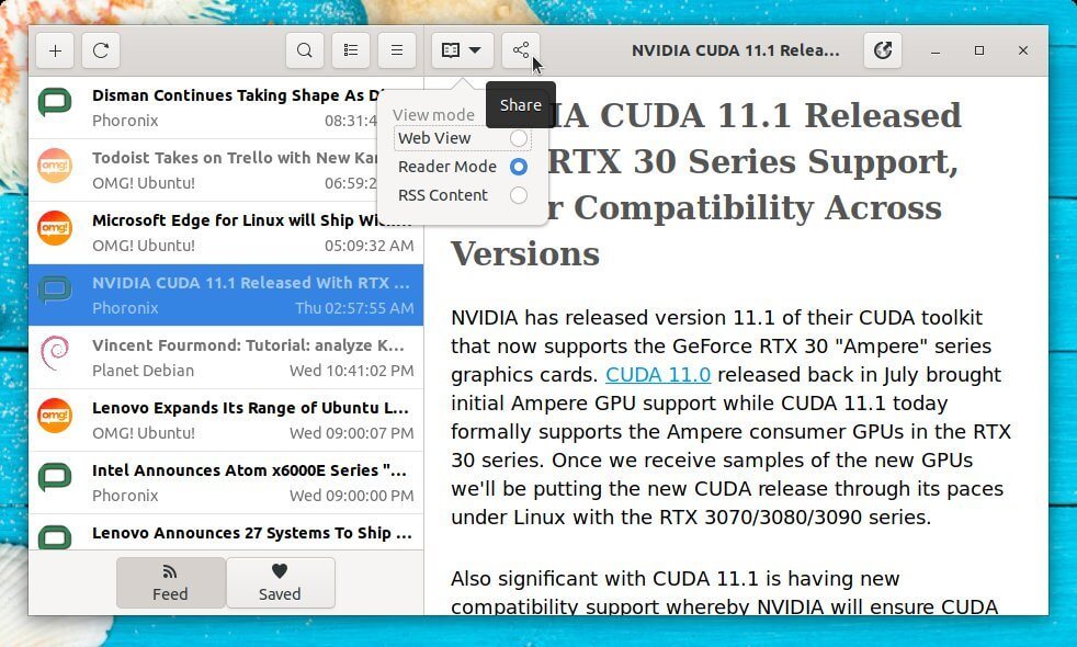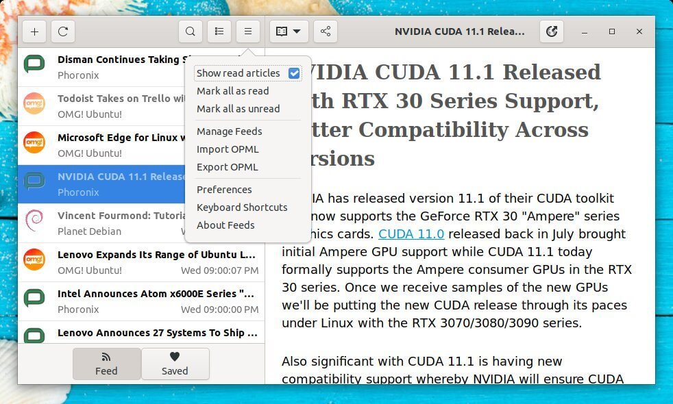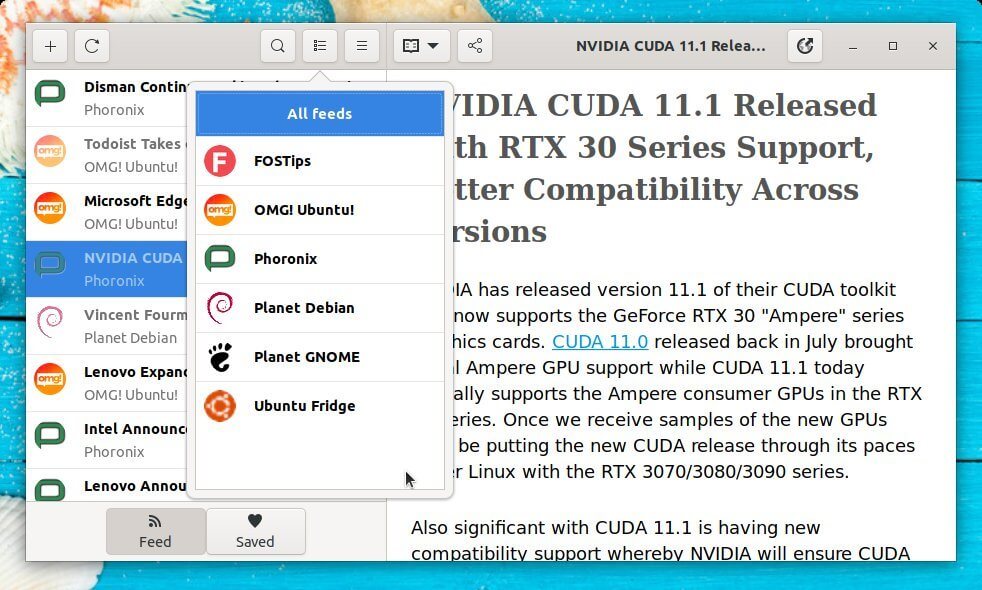 Looking for a feed reader application for your Linux Desktop? Try Feeds, a modern news reader for Gnome.