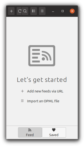 Feeds is a minimal RSS/Atom feed reader built with speed and simplicity in mind. It starts either by adding new feeds via URL, or importing an OPML file.