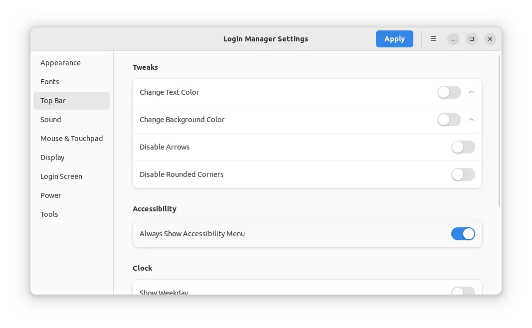 It’s a free and open-source application for configuring the login screen of Ubuntu, Fedora Workstation, and other Linux (such as RHEL, Debian, Arch, Manjaro) with GNOME.
