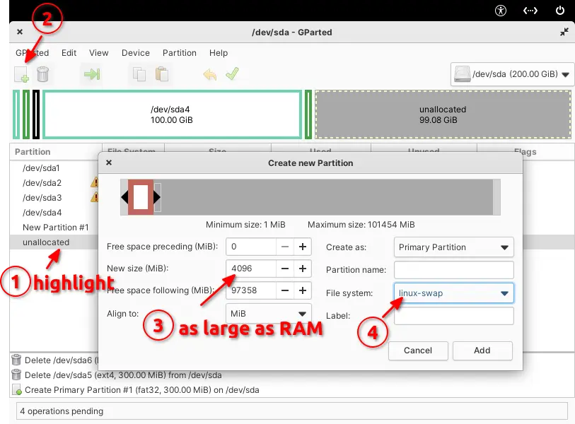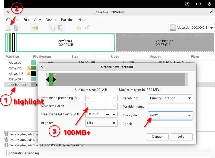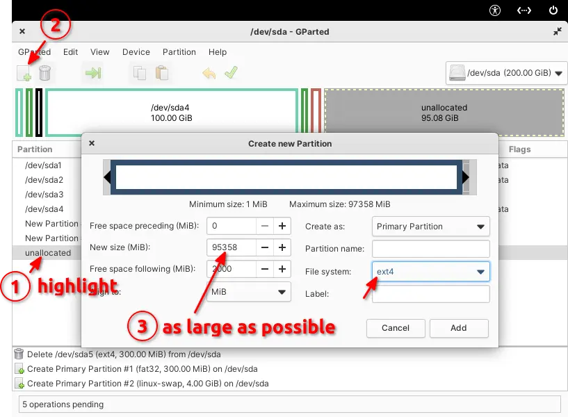 Finally, highlight unallocated space and create following partitions one by one in case you don’t have them: