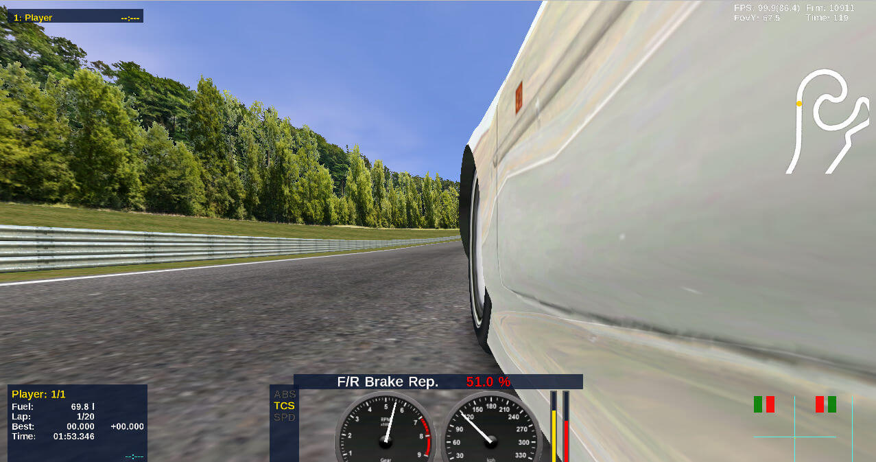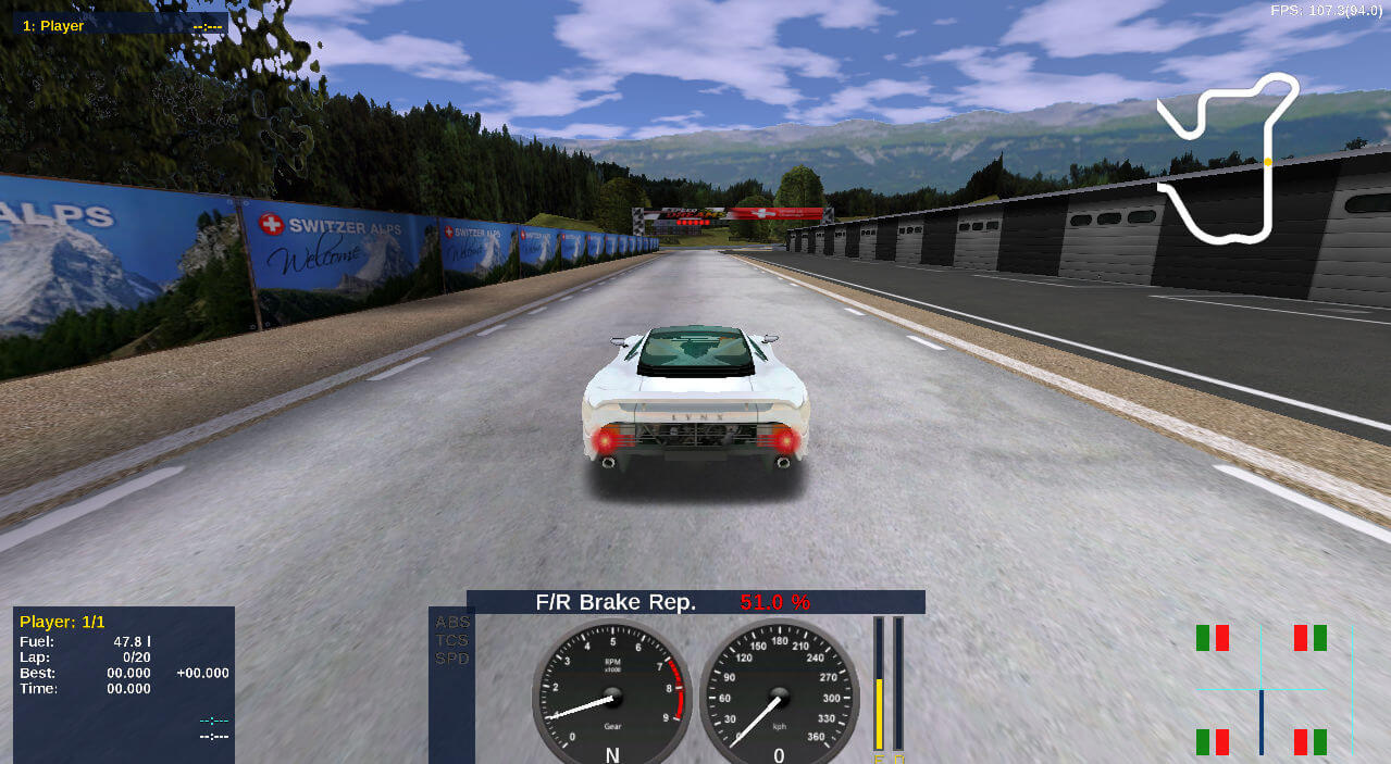 The game includes many high quality tracks and fine-tuned cars. As well, 2 first class AI opponents are available for thrilling races. And it supports for many input devices, such as keyboard, joypad, joystick, wheel/pedal, etc.