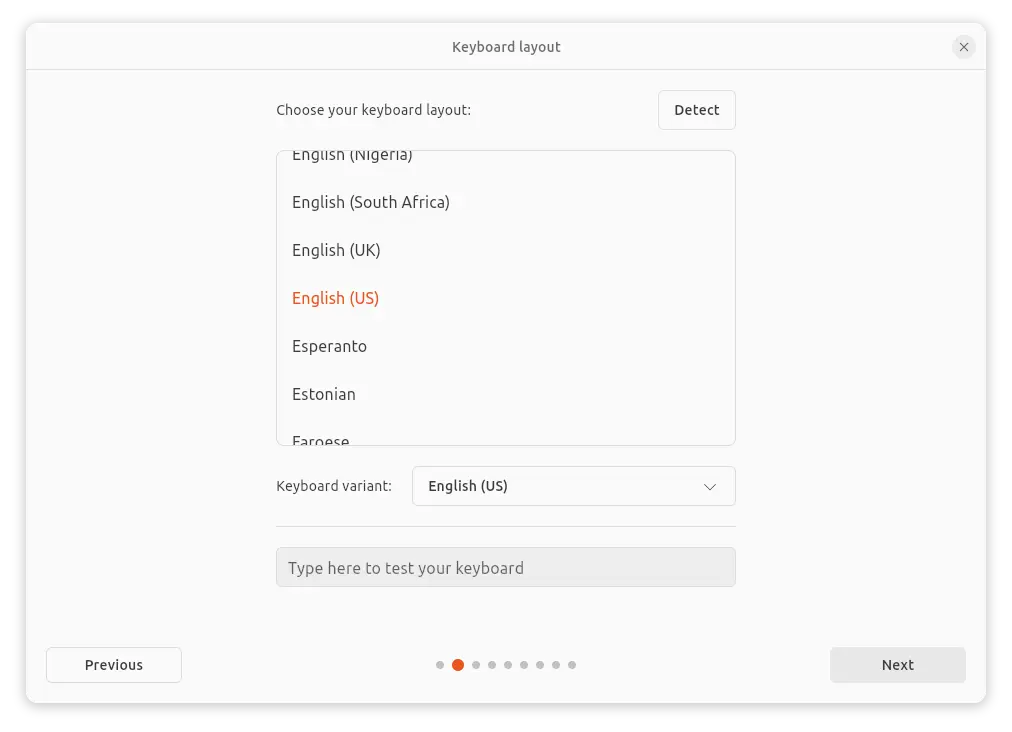 Installer wizard – Configure language, keyboard, etc.