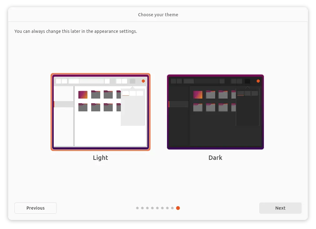 Then select time zone, setup user account, and select light/dark mode. When done, it will show you the installing process.