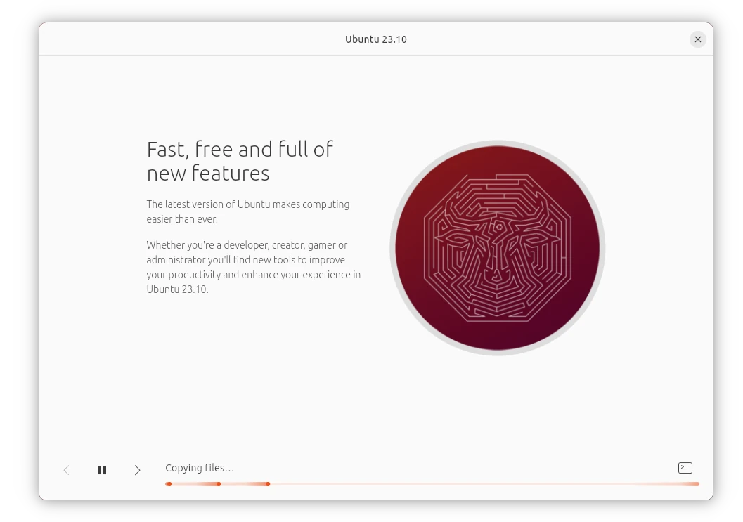 Either click “Continue testing” to try Ubuntu 23.10 live system, or restart and done.