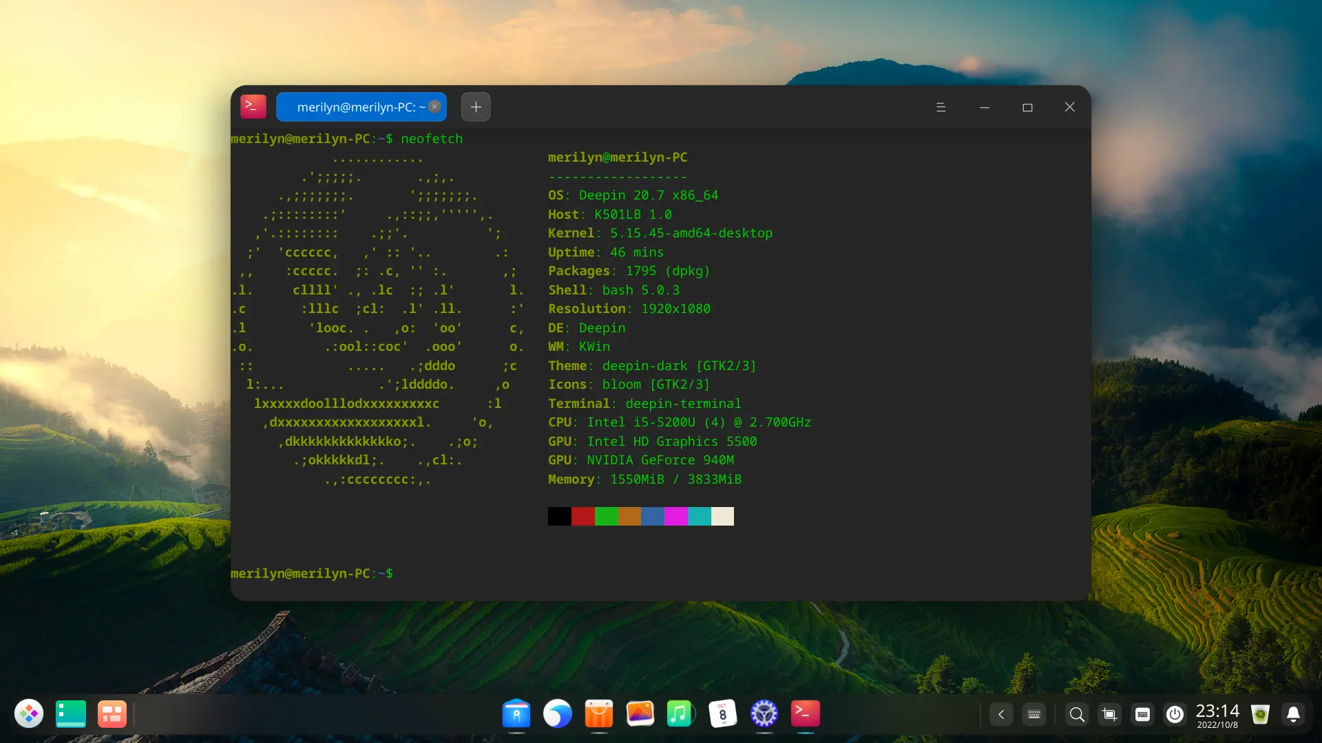 Some part of the desktop components (e.g., login screen date & time, user’s folder names) are in Chinese language and not configurable. And, there’s no office suite out-of-the-box, though it can be installed by running a apt command in terminal.
