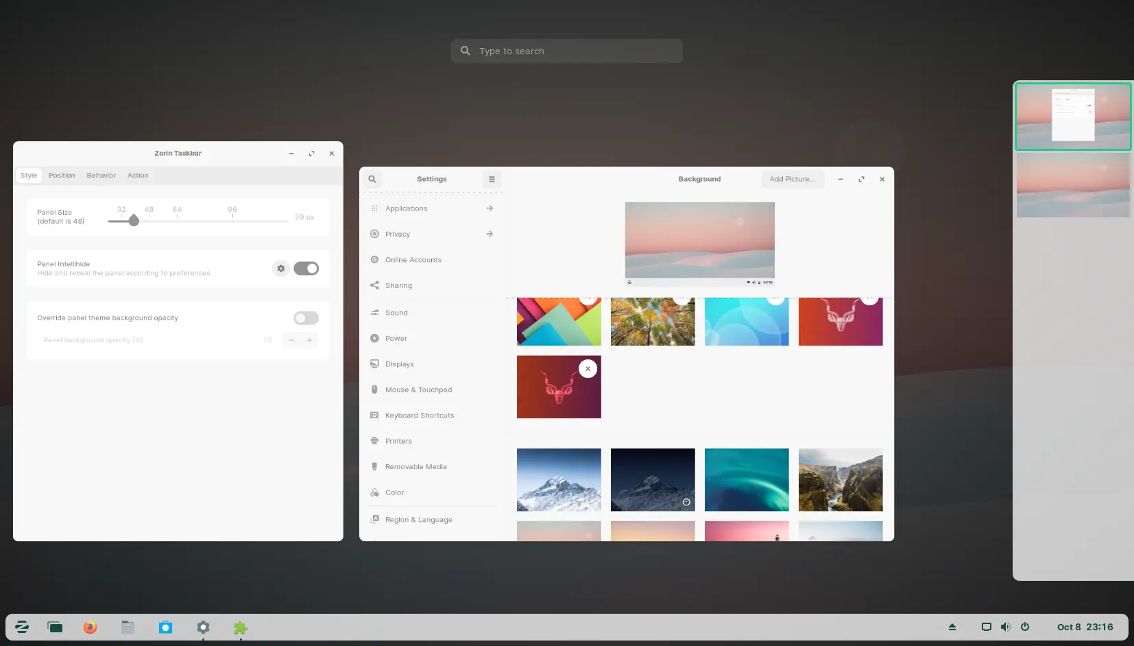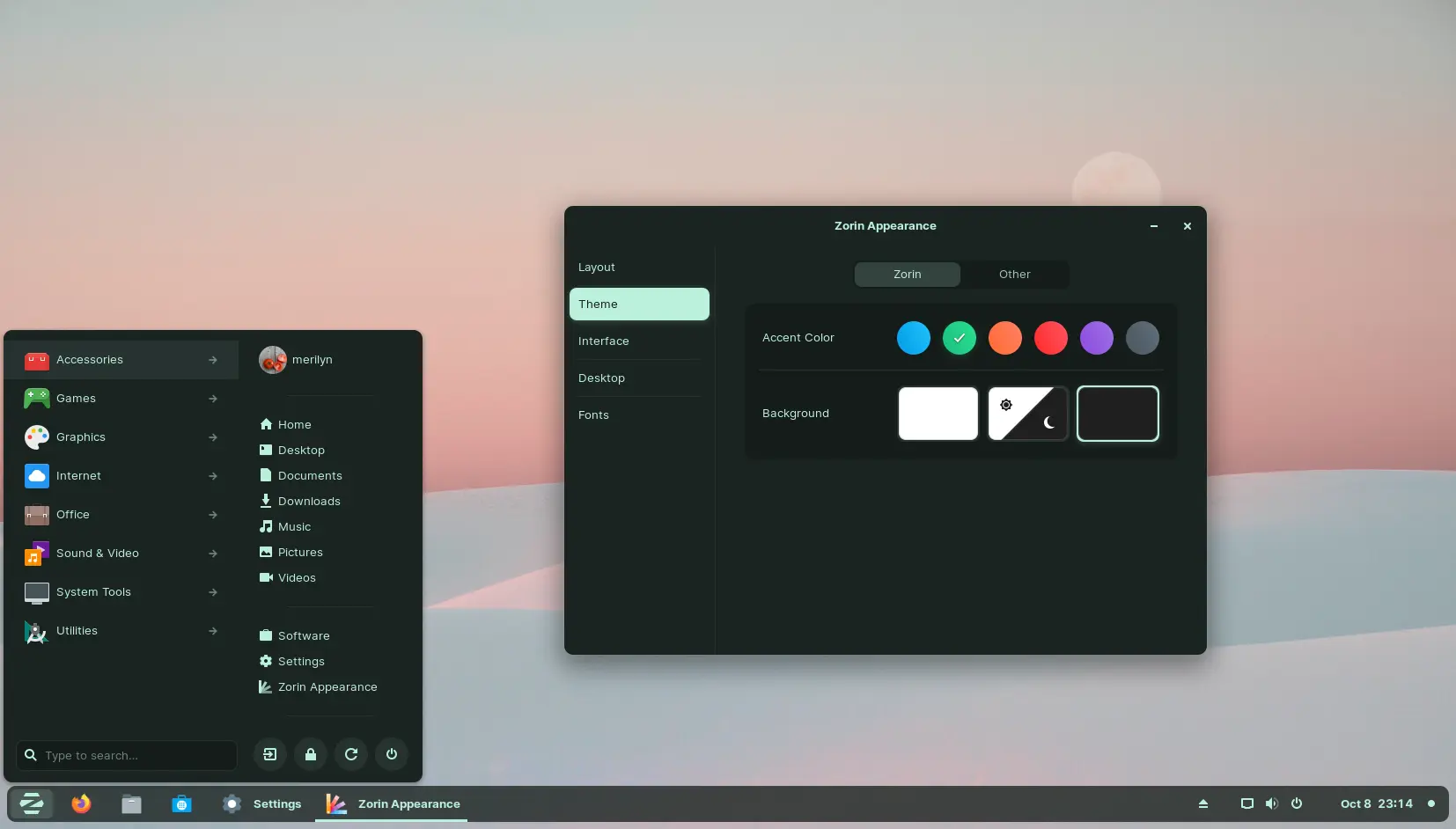 The OS uses GNOME desktop with custom theme and extensions to provide a MS Windows user friendly layout. It also has optional task-bar & start menu layout options through the built-in ‘Zorin Appearance‘ utility. And, it supports both light and dark mode with 6 accent colors, and has a cool rounded floating panel via the ‘Panel Intelli-hide’ tarkbar settings.