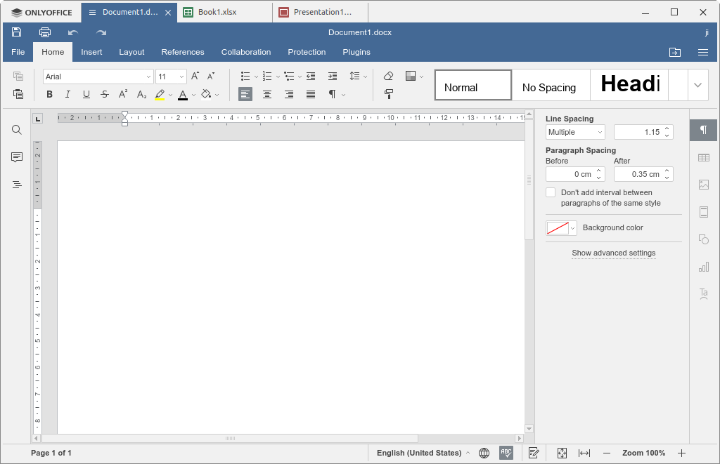 The Desktop Editors is for offline use on Windows, Linux, and Mac OS. It is fully compatible with Office Open XML formats: .docx, .xlsx, .pptx. And it’s made of: