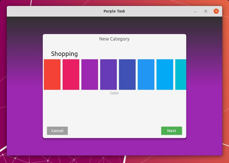 Tasks are grouped by categories. And each category has its own background color. It’s well working on Linux laptop with touchscreen as it supports for sliding to switch among categories, color, and other items. And background color will change accordingly when you select a task category.