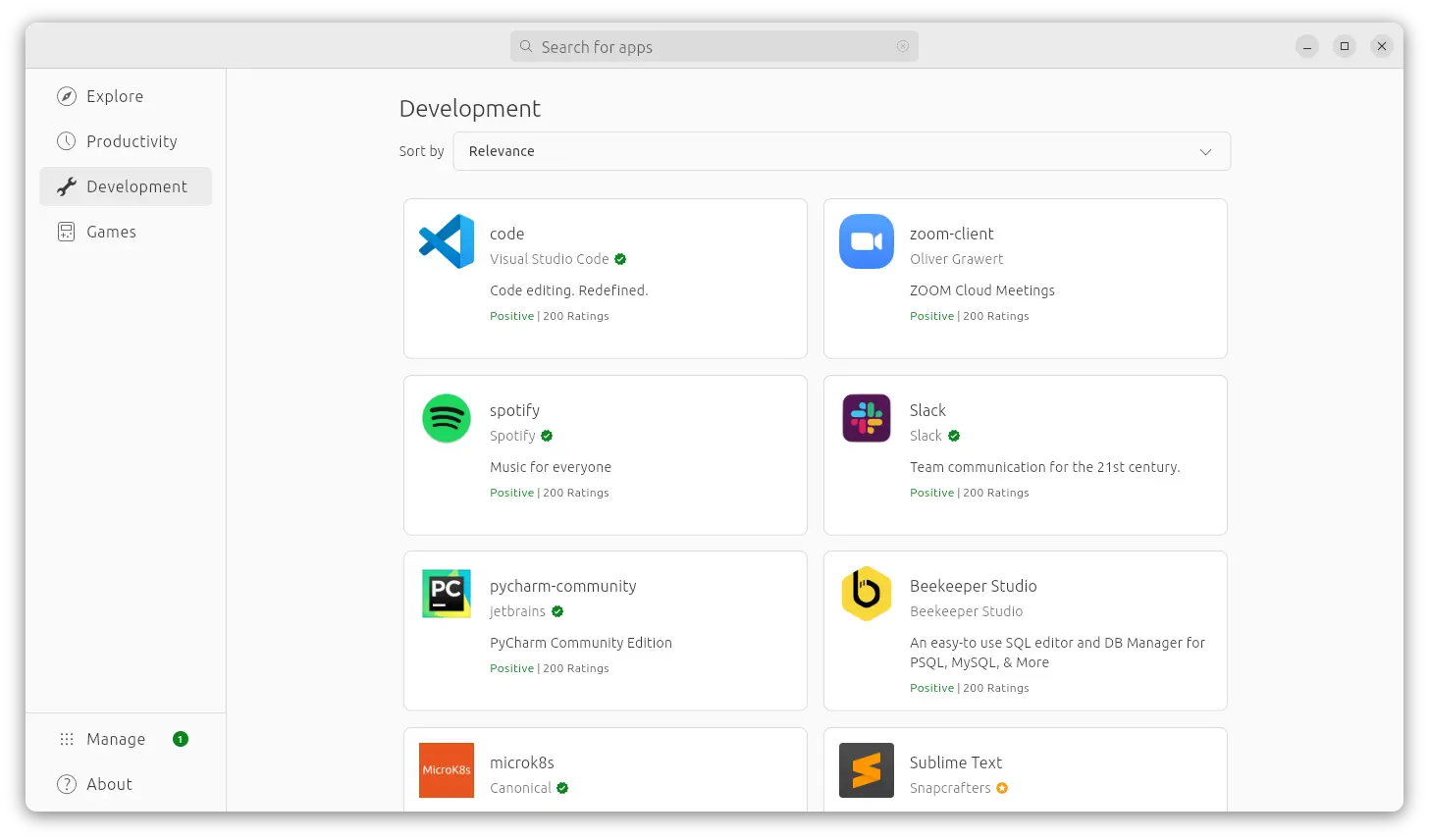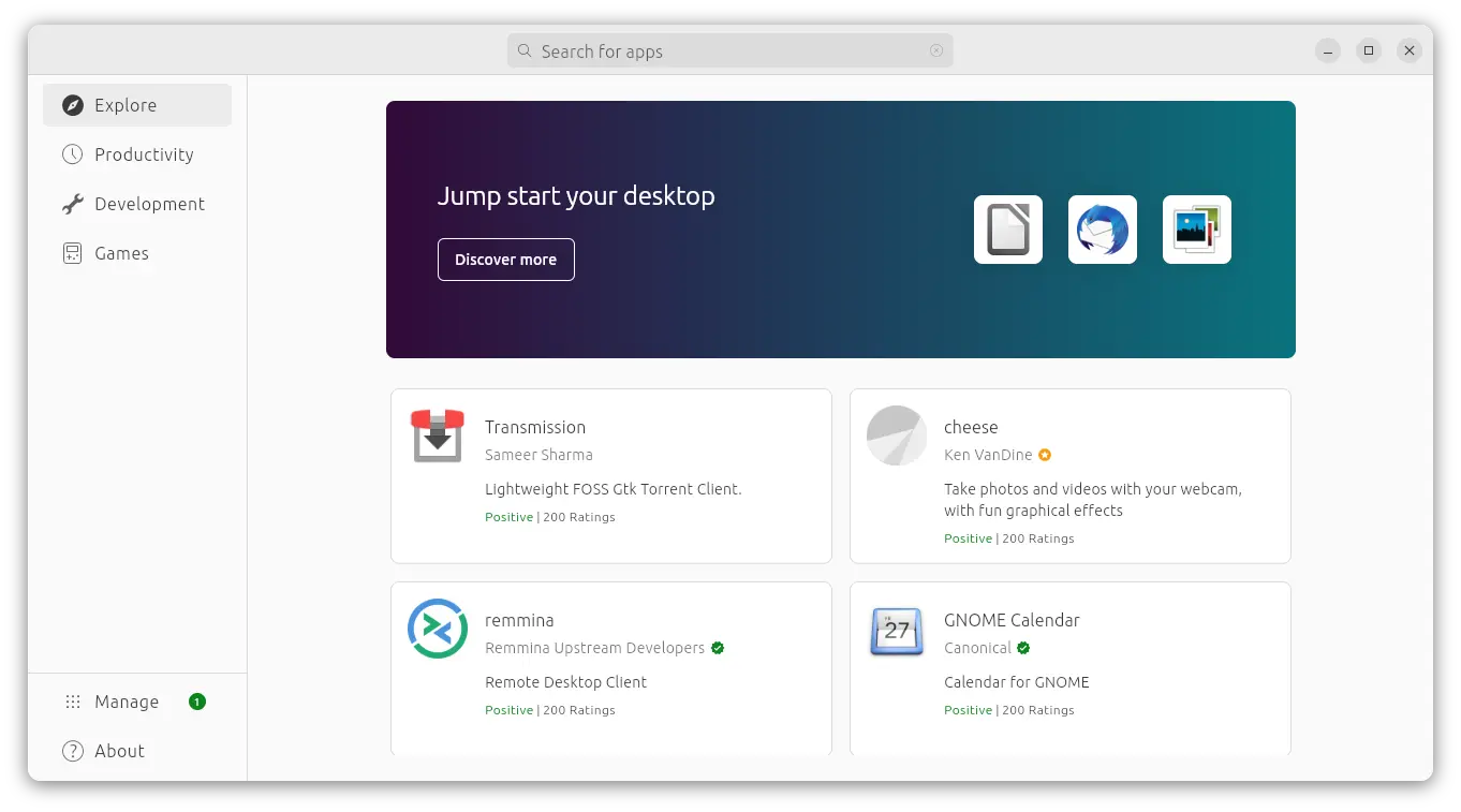 The new app store looks great. Compare to the previous Gnome Software and current Snap Store, it just works, and fast. It no longer stucks at either spinning loading circle or “Software catalog is being downloaded“.