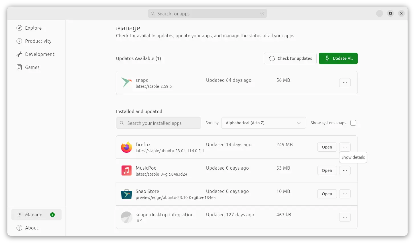 sudo snap refresh snap-store --channel=preview/edge/ubuntu-23.10