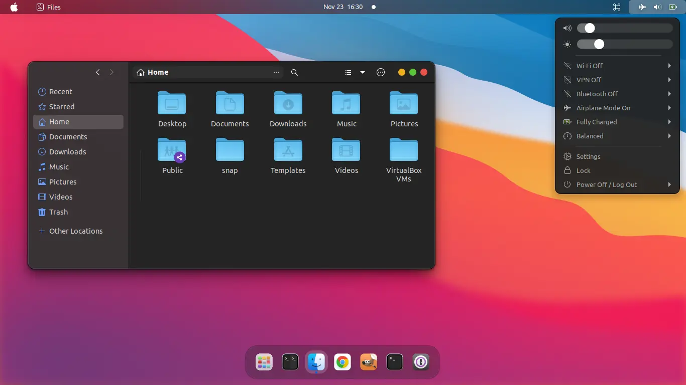 - select WhiteSur light/dark for Applications theme.