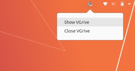 VGrive starts as an indicator applet in system tray, and offers a simple user interface to login Google account and setup local file folder.