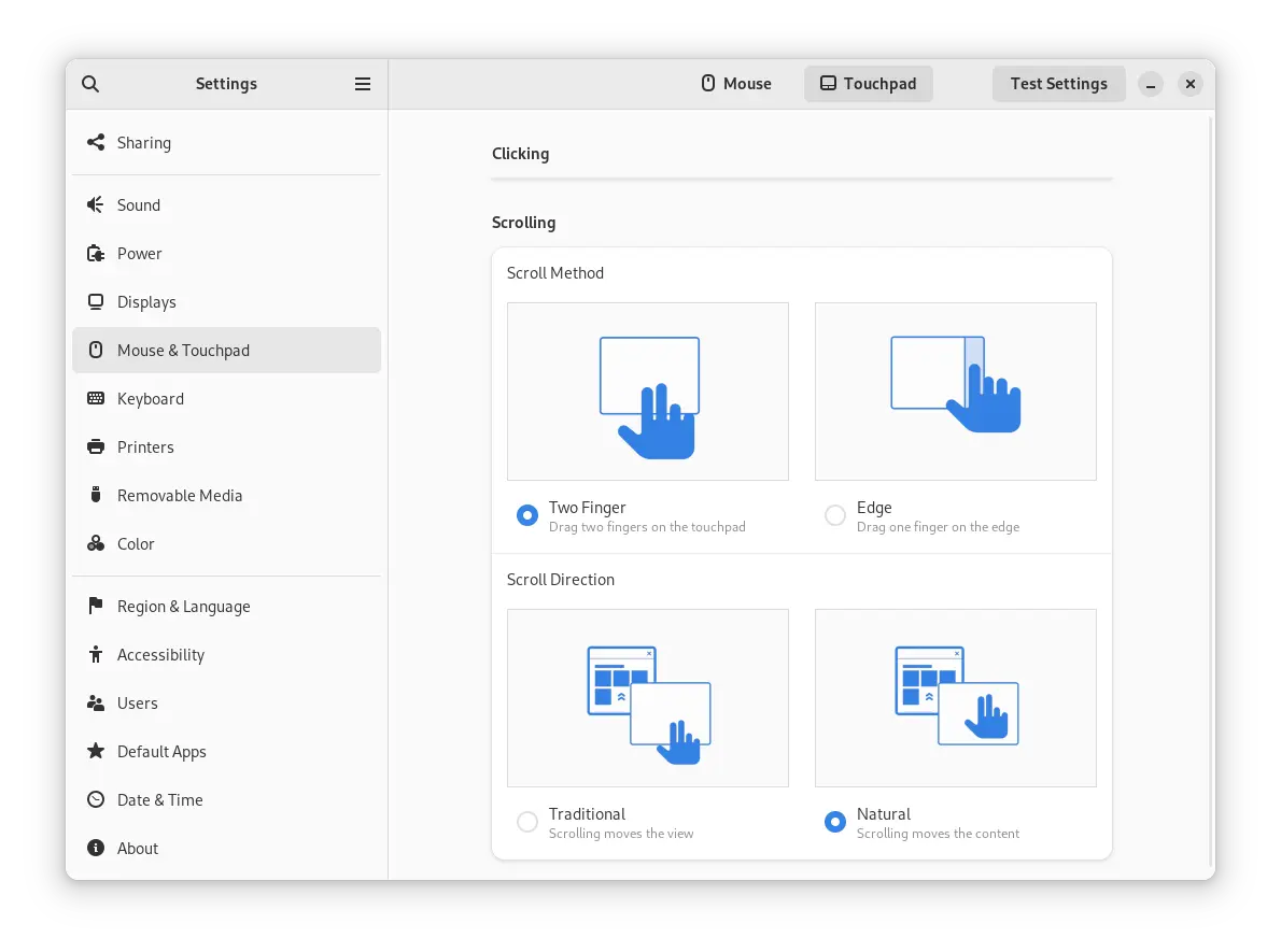 Mouse & Touchpad page now looks much more friendly to beginners. It now shows animated images (need to hover cursor over) along with texts, to make users easily understand which option to use.